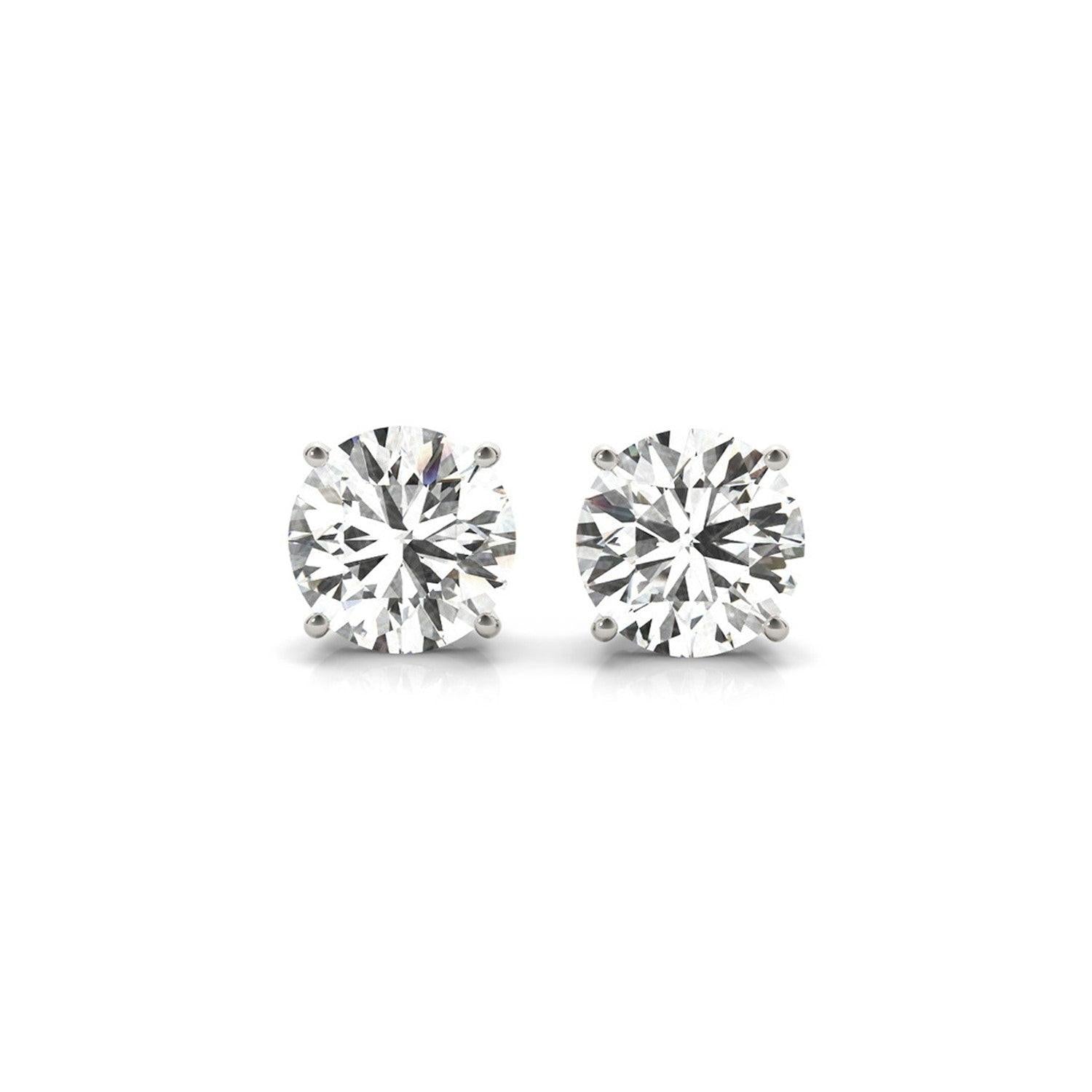 Four prong 14k white gold stud earrings feature two perfectly matched IGI certified lab grown round cut diamonds with a total weight of 4 carat. Secured with push backs.