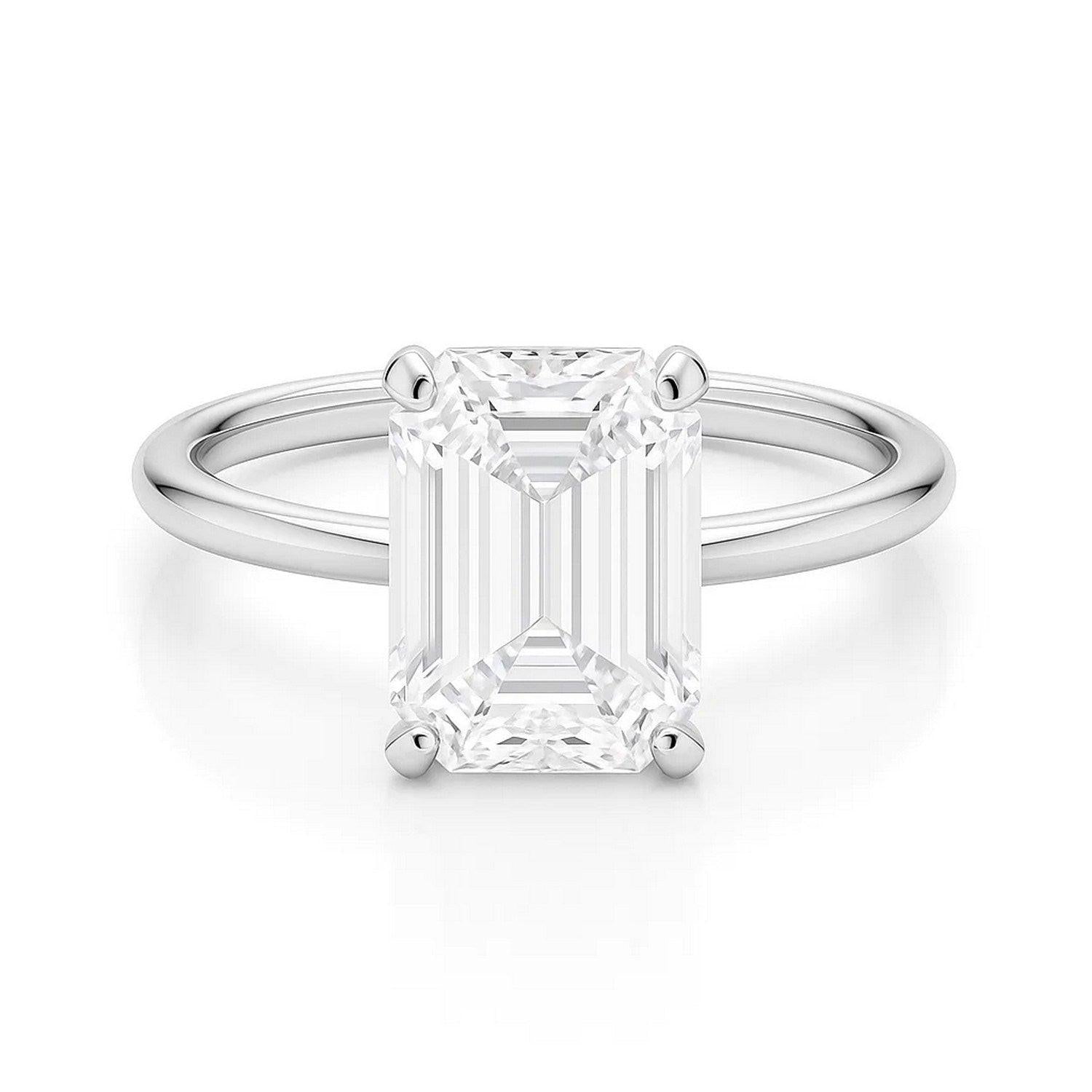 5 Carat Emerald Lab Grown IGI G/VS1 Diamond Solitaire Ring in 10K White Gold