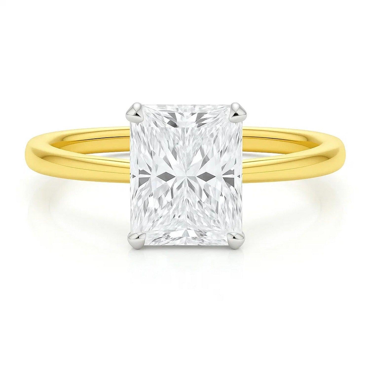 5 Carat Radiant Lab Grown IGI G/VS1 Diamond Solitaire Ring in 10K Yellow Gold