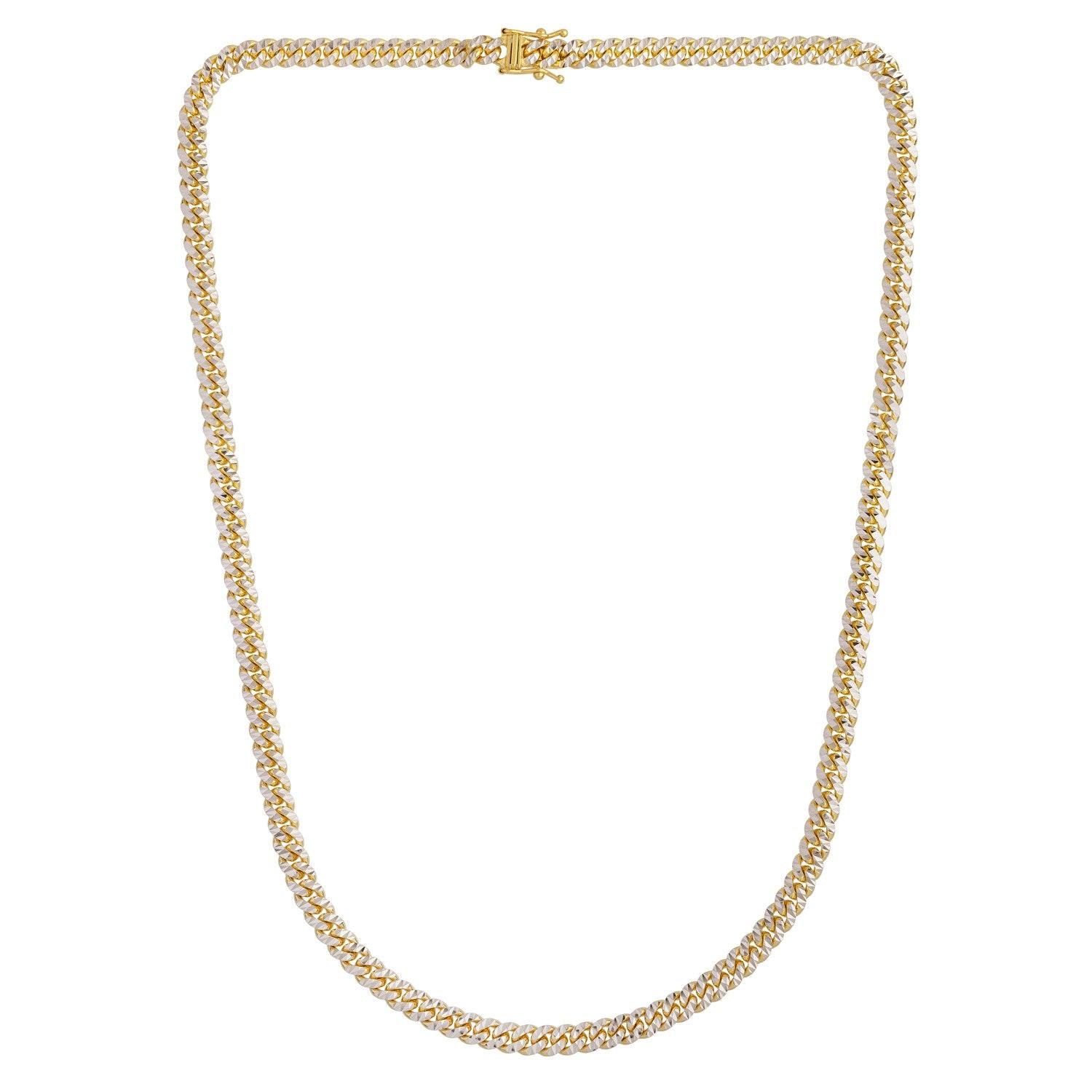 Classic Miami cuban white pave solid chain crafted in 14k yellow gold measuring 6 millimeters in width. Available in lengths 20 inches, 22 inches and 24 inches.