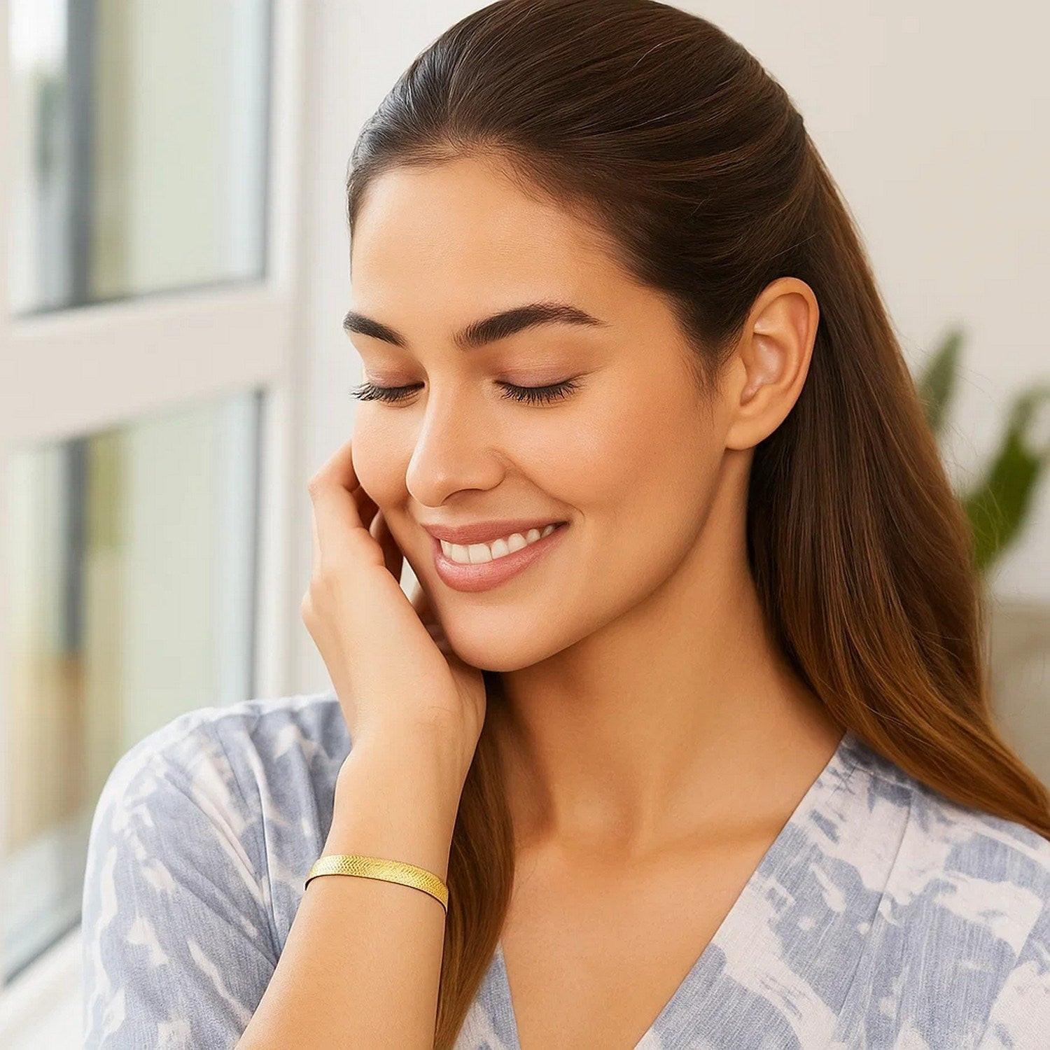 Imperial herringbone bracelet crafted in 10k yellow gold measuring 4.6 millimeters in width. Secured with a lobster clasp.