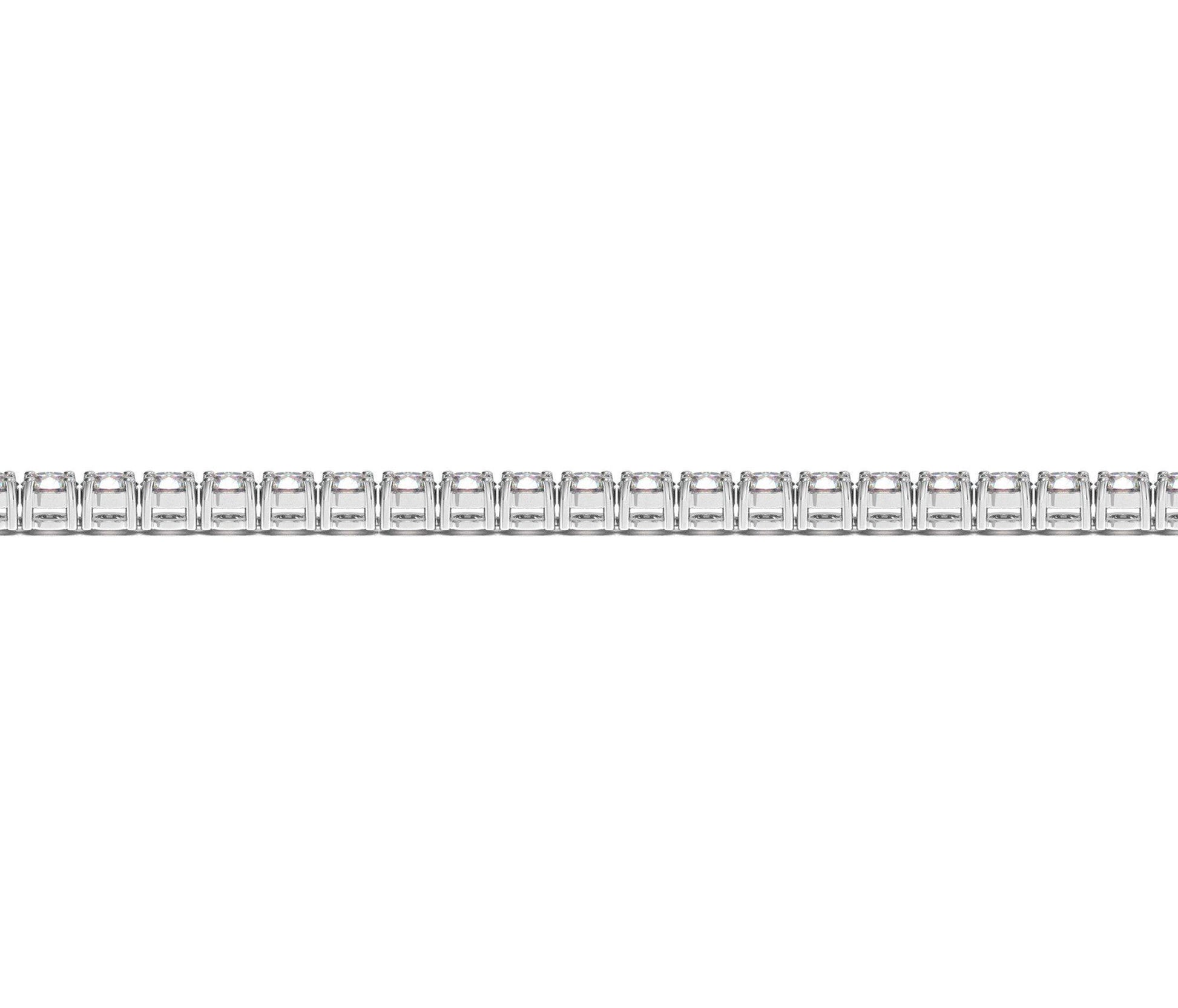 Classic four prong 4 carat total weight diamond tennis bracelet showcasing perfectly matched brilliant round cut lab grown diamonds set in 14k white gold.