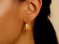 Designed with subtle elegance, these 14k Yellow gold large concave hoop earrings showcase a striking double-row design that radiates sophistication. The concave silhouette adds depth and dimension while the polished finish shines. Secured with a hinged clasp for effortless wear, these hoops are a timeless statement piece.