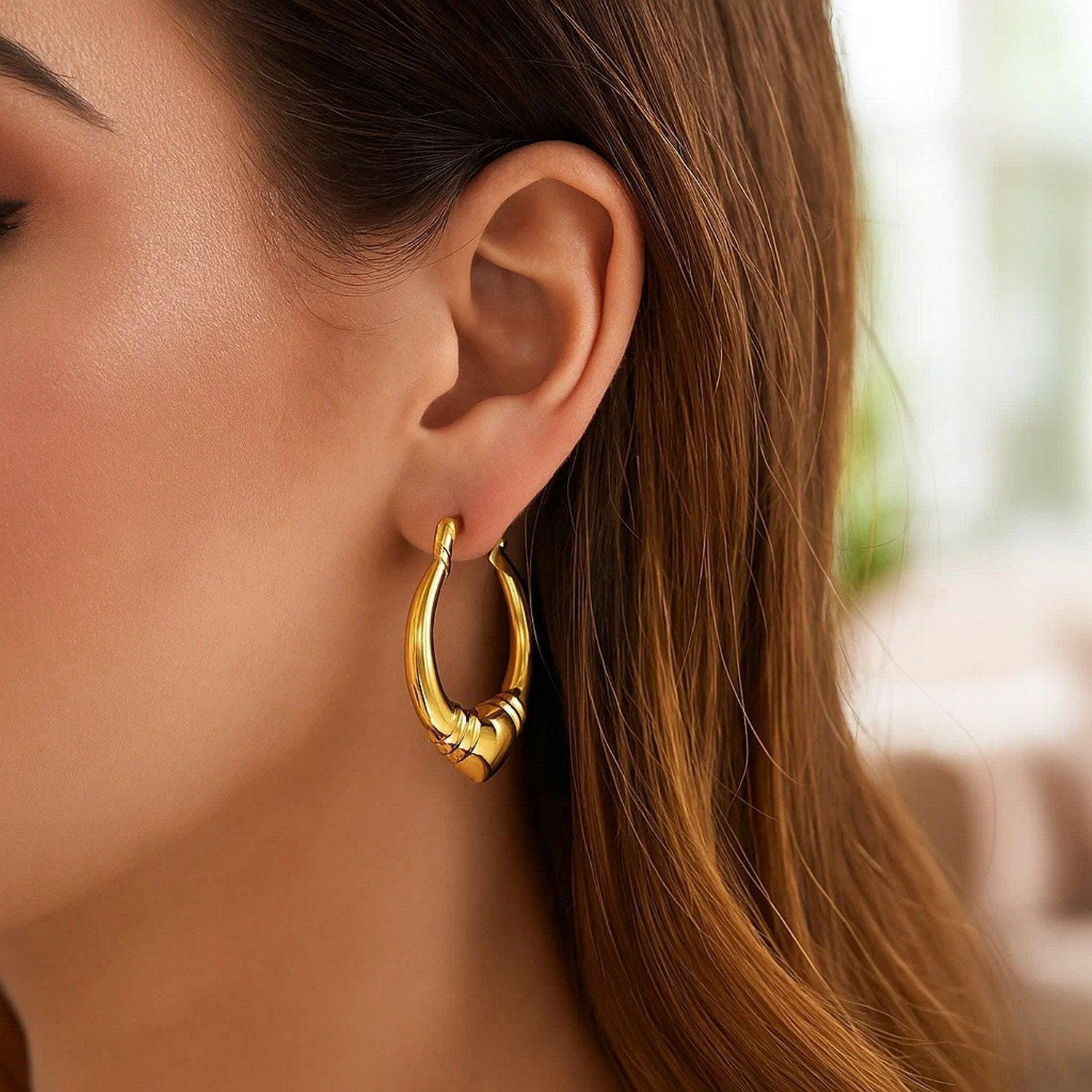 Large Heart Hoop Earrings in 14K Yellow Gold
