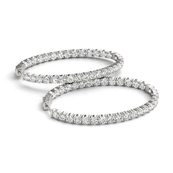 Positively bewitching, these hoop style earrings showcase double sided diamonds in oval outer shape. Crafted in fine 14k white gold and secured with hinge locks.
