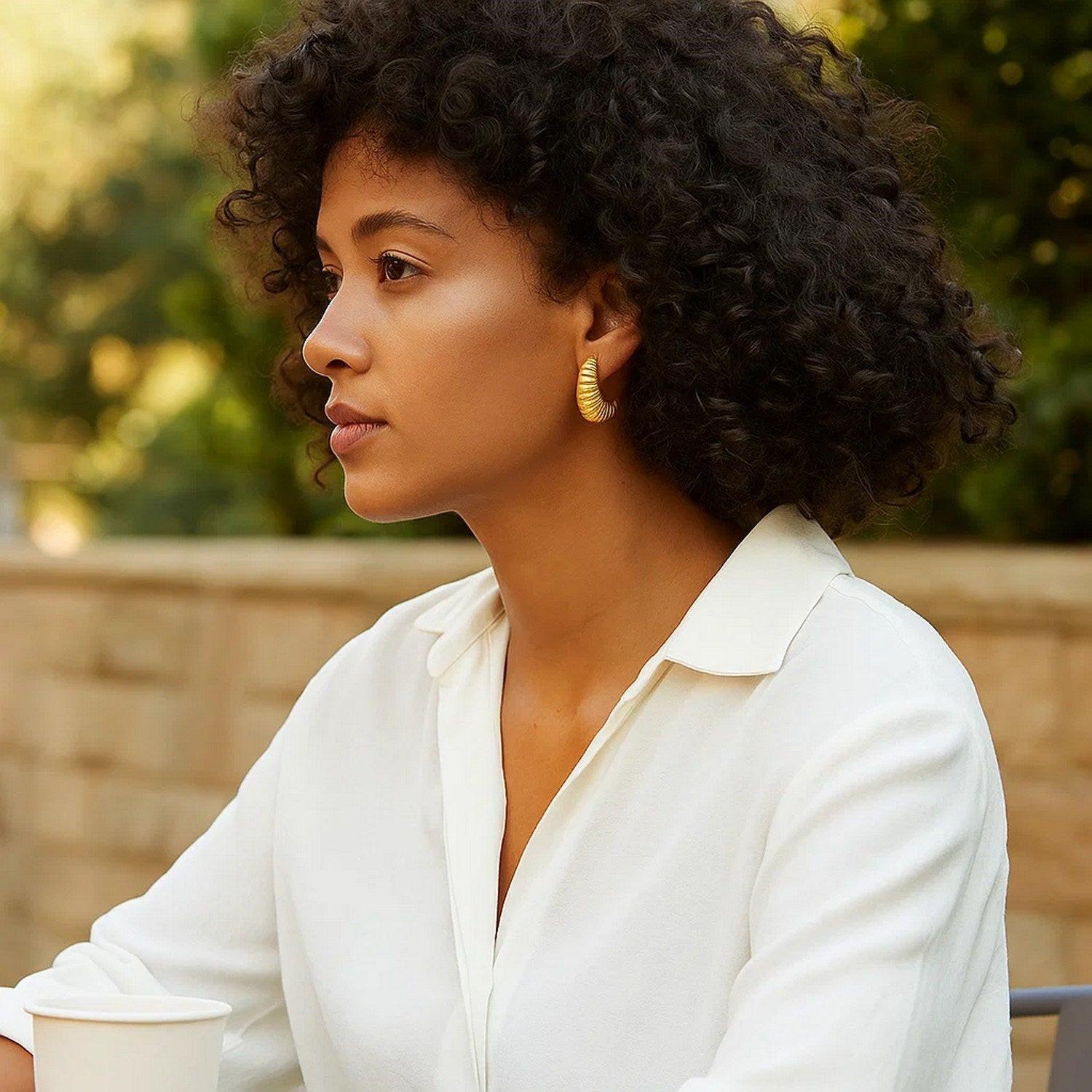 Puffy Graduated Ribbed Shell Hoop Earrings in 14K Yellow Gold