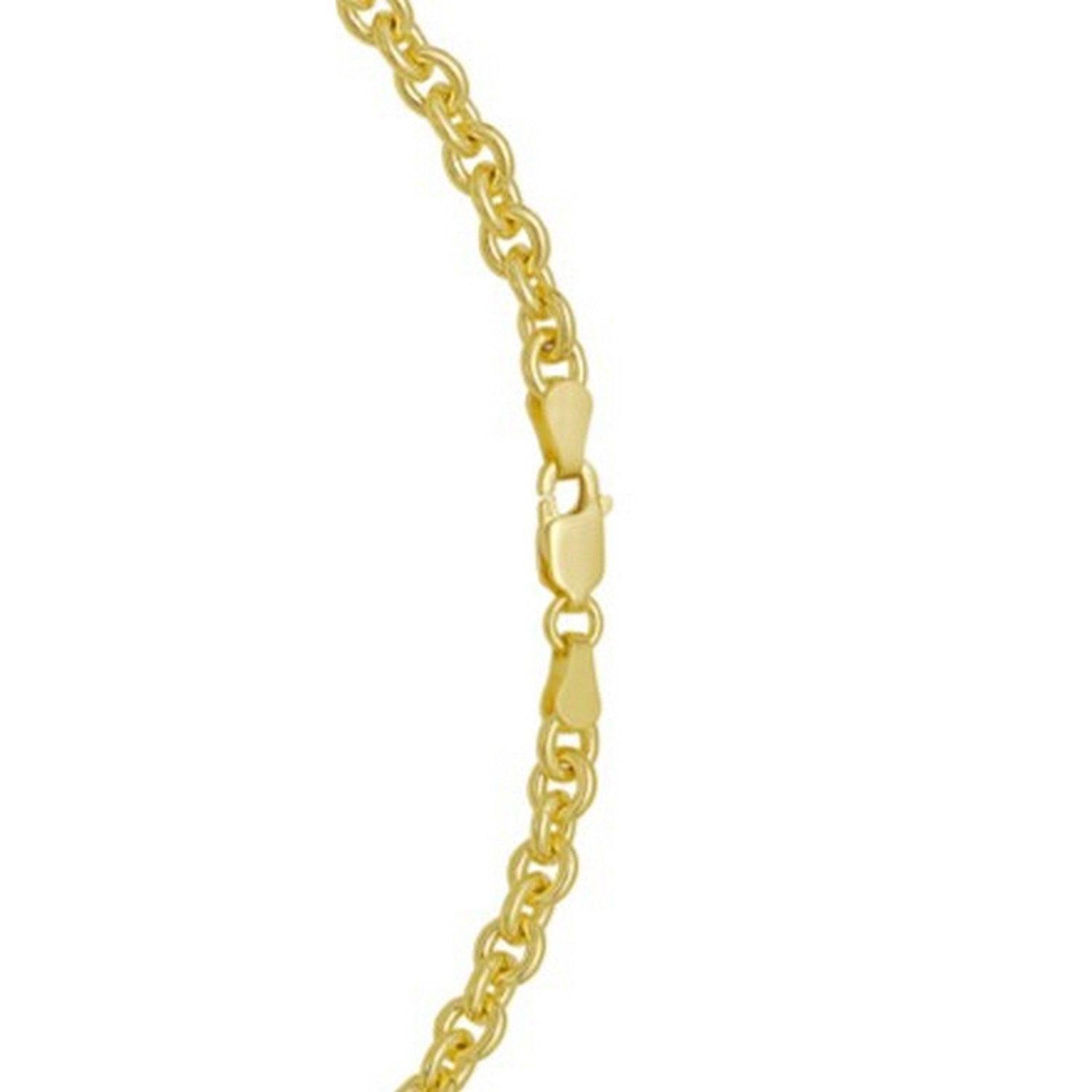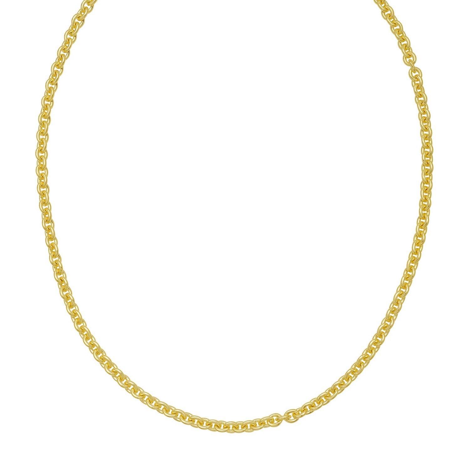 Crafted in sterling silver with a luxurious gold plating, this 4.70 mm rolo chain features strong, rounded links that deliver excellent durability and a rich, polished shine, making it a bold and versatile piece perfect for wearing alone or pairing with a standout pendant.