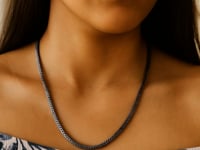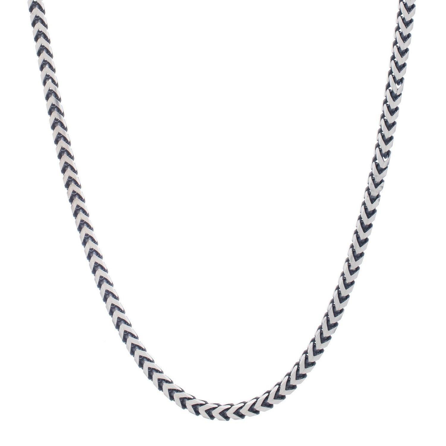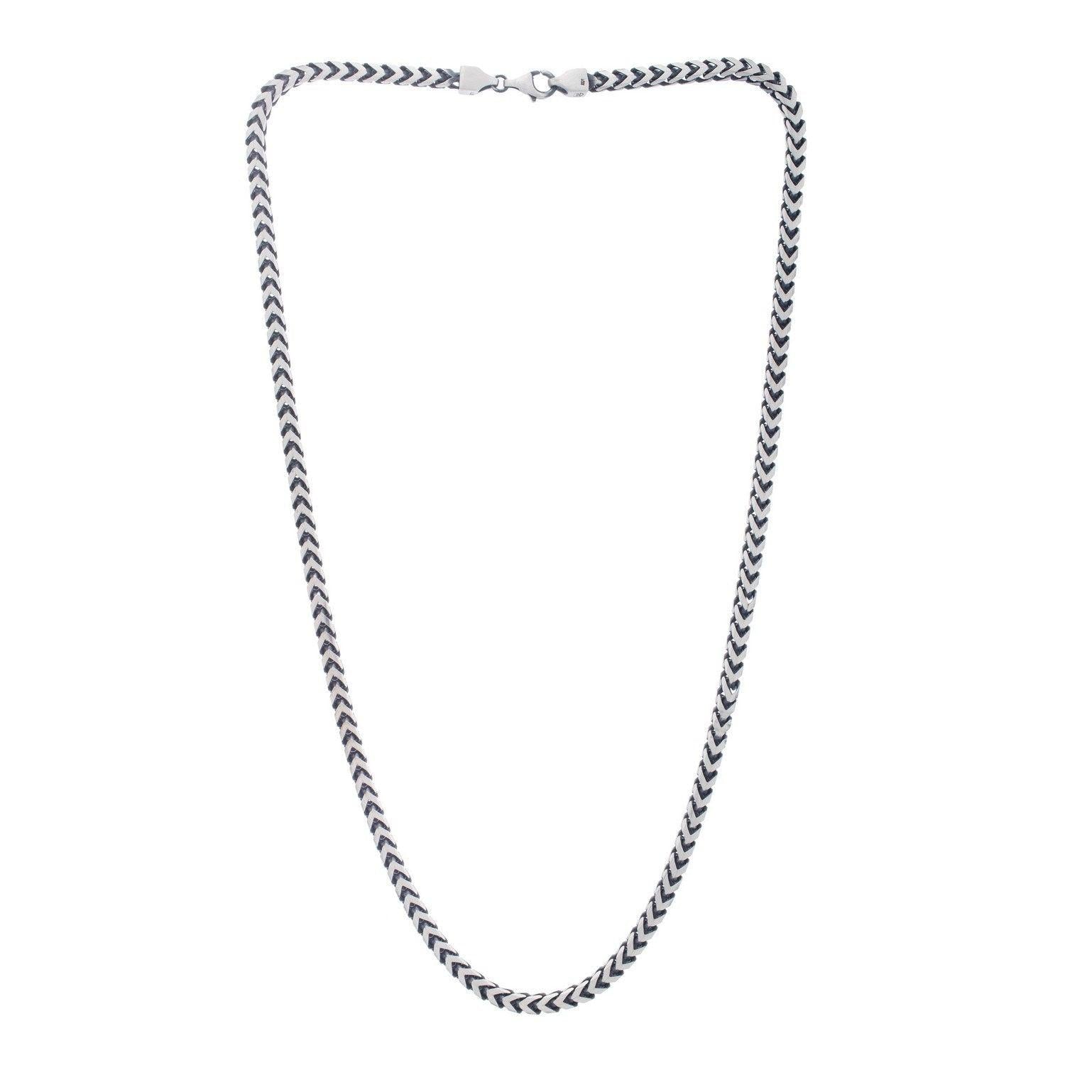Crafted in solid sterling silver with a bold gunmetal finish, this 4.60 mm Franco link chain features tightly woven, four-sided links that offer exceptional strength and a sleek, modern edge, making it a standout piece perfect for wearing solo or pairing with your favorite pendant.