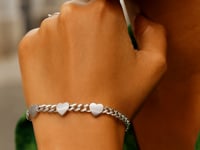 This sterling silver rhodium plated heart chain bracelet features polished heart accents along a sleek, shining chain. Its bright modern finish and romantic style make it perfect for everyday wear, layering, or gifting.