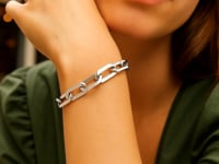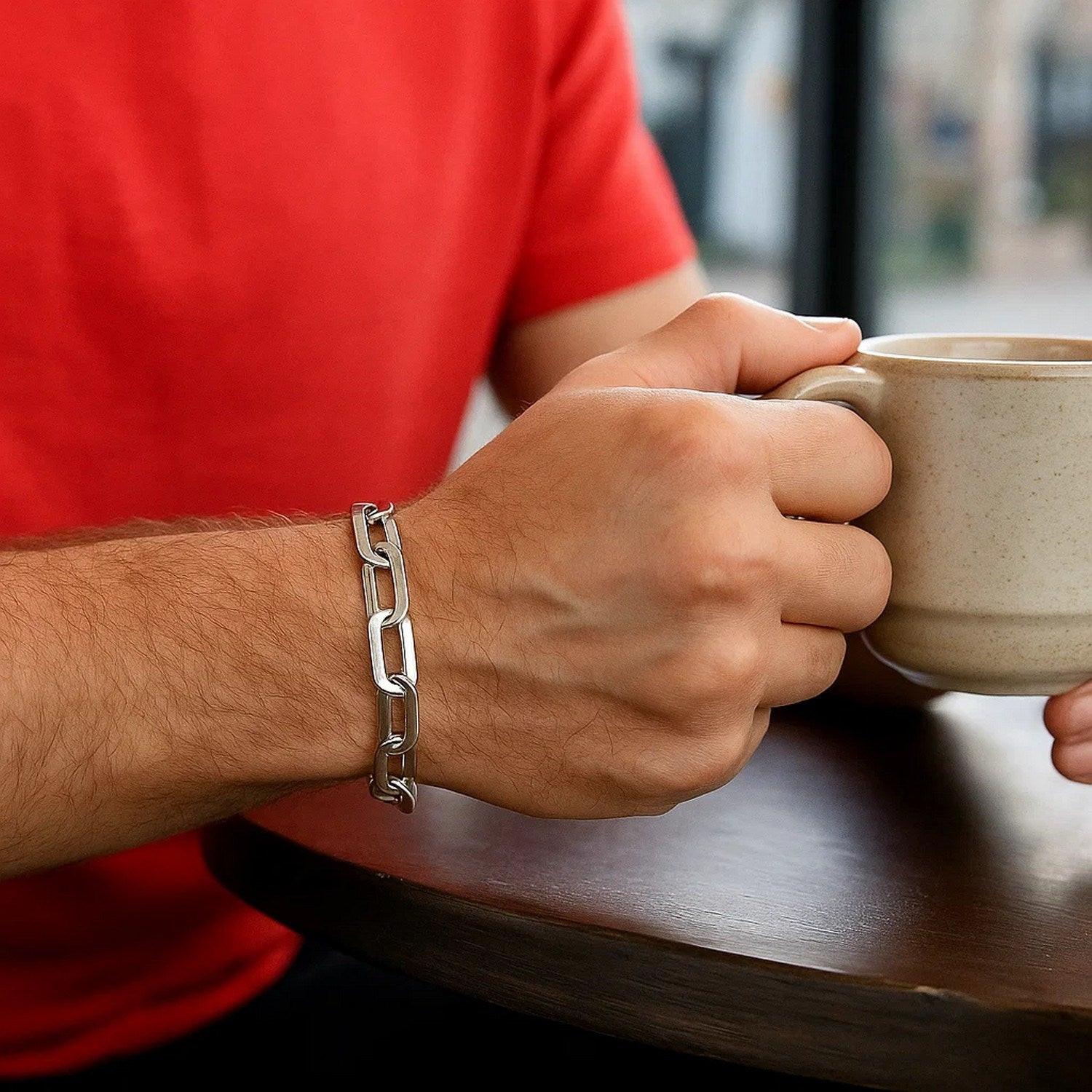 This sterling silver rhodium plated Italian paperclip bracelet (10.30 mm) features bold, elongated links with a bright, polished finish. Its modern, oversized design makes a striking statement, perfect for elevating everyday looks or layering with other favorites.