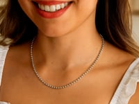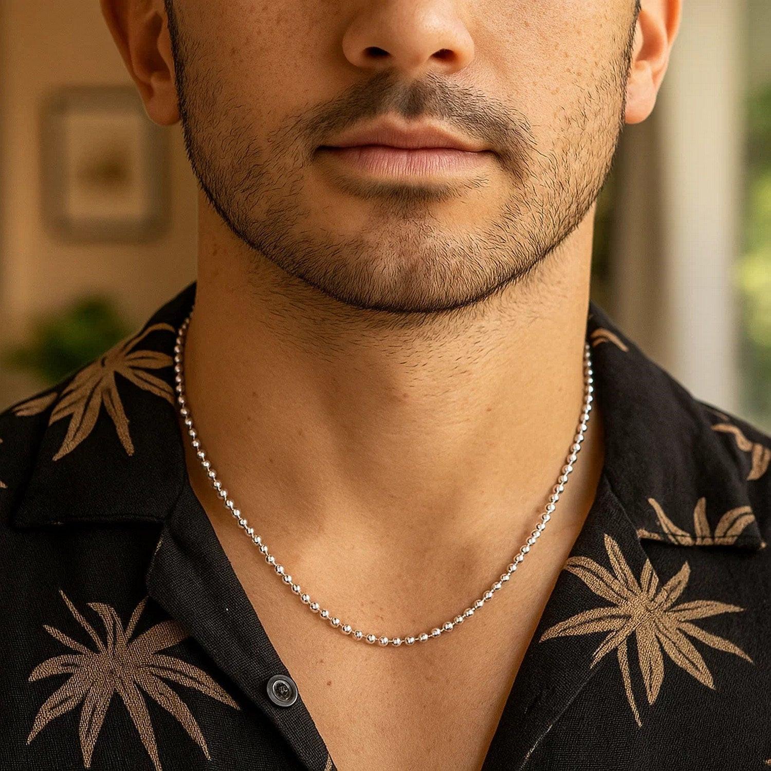 Crafted in sterling silver with a sleek rhodium finish, this 3.00 mm moon cut bead chain features finely faceted beads that shimmer with every movement, offering a radiant, eye-catching sparkle in a durable, elegant design perfect for wearing alone or pairing with your favorite pendant.