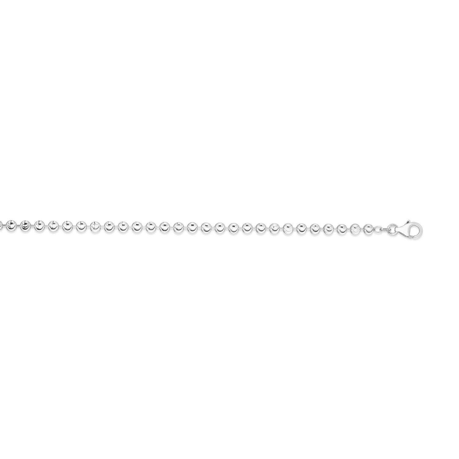 Crafted in sterling silver and finished with a bright rhodium plating, this 4.00 mm moon cut bead chain showcases larger, faceted beads that deliver striking brilliance and bold texture, creating an eye-catching statement piece perfect for wearing solo or enhancing with a standout pendant.