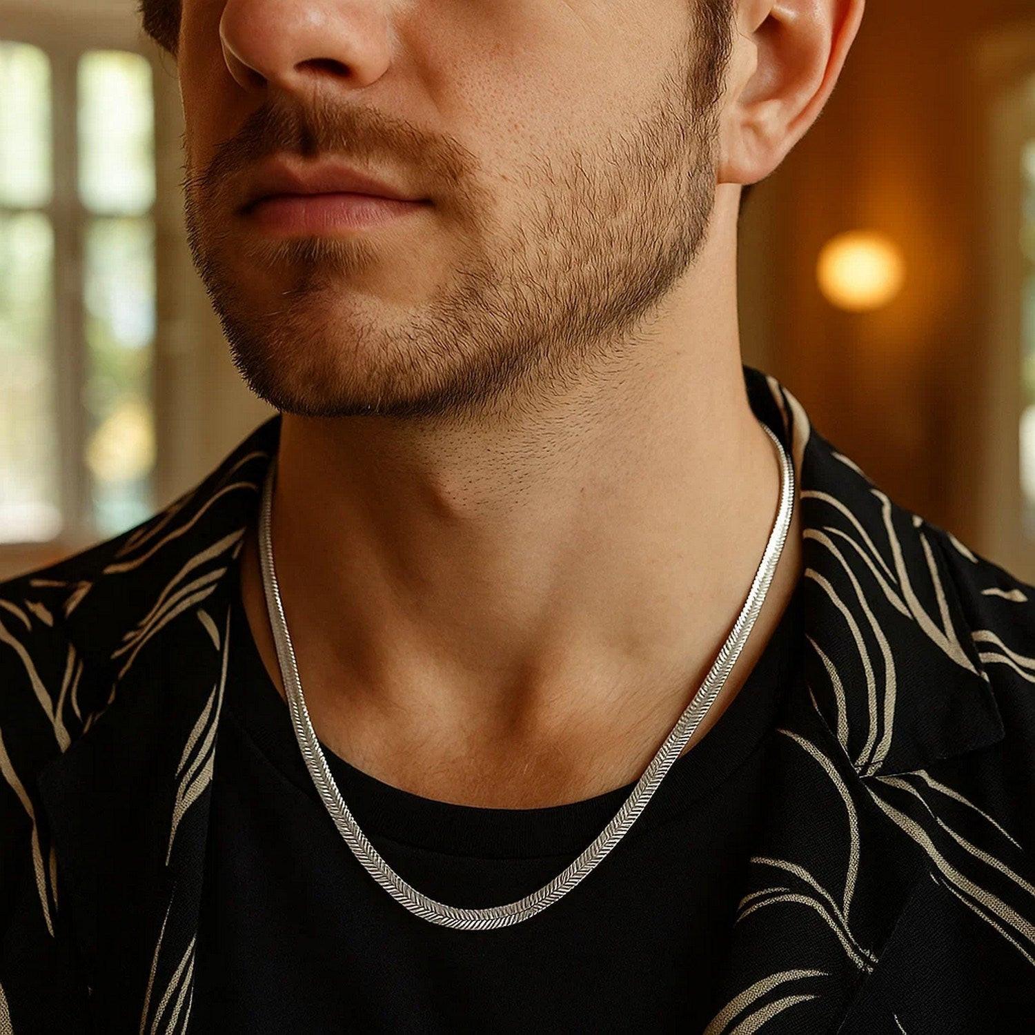 Crafted in sterling silver with a brilliant rhodium finish, this 6.40 mm oval snake chain features bold, elongated links that deliver a smooth, flexible drape and striking reflective shine, making it a statement piece perfect for elevating any look on its own or with a standout pendant.