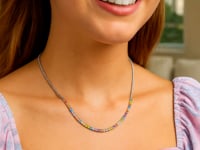 Sterling Silver Rhodium Plated Rainbow CZ Necklace