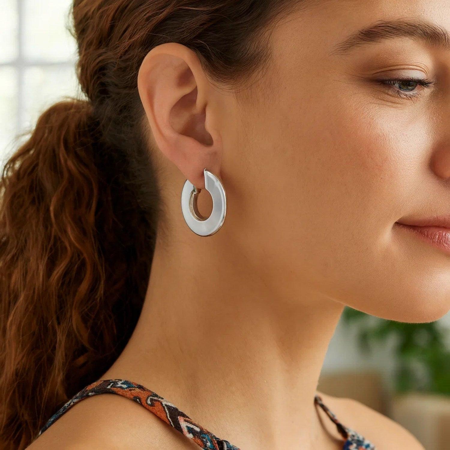 Chic sterling silver rhodium plated small puffed hoop earrings featuring a smooth, rounded design with a radiant polished finish. The puffed silhouette offers subtle elegance and shine, while the rhodium plating ensures lasting brilliance and everyday sophistication.