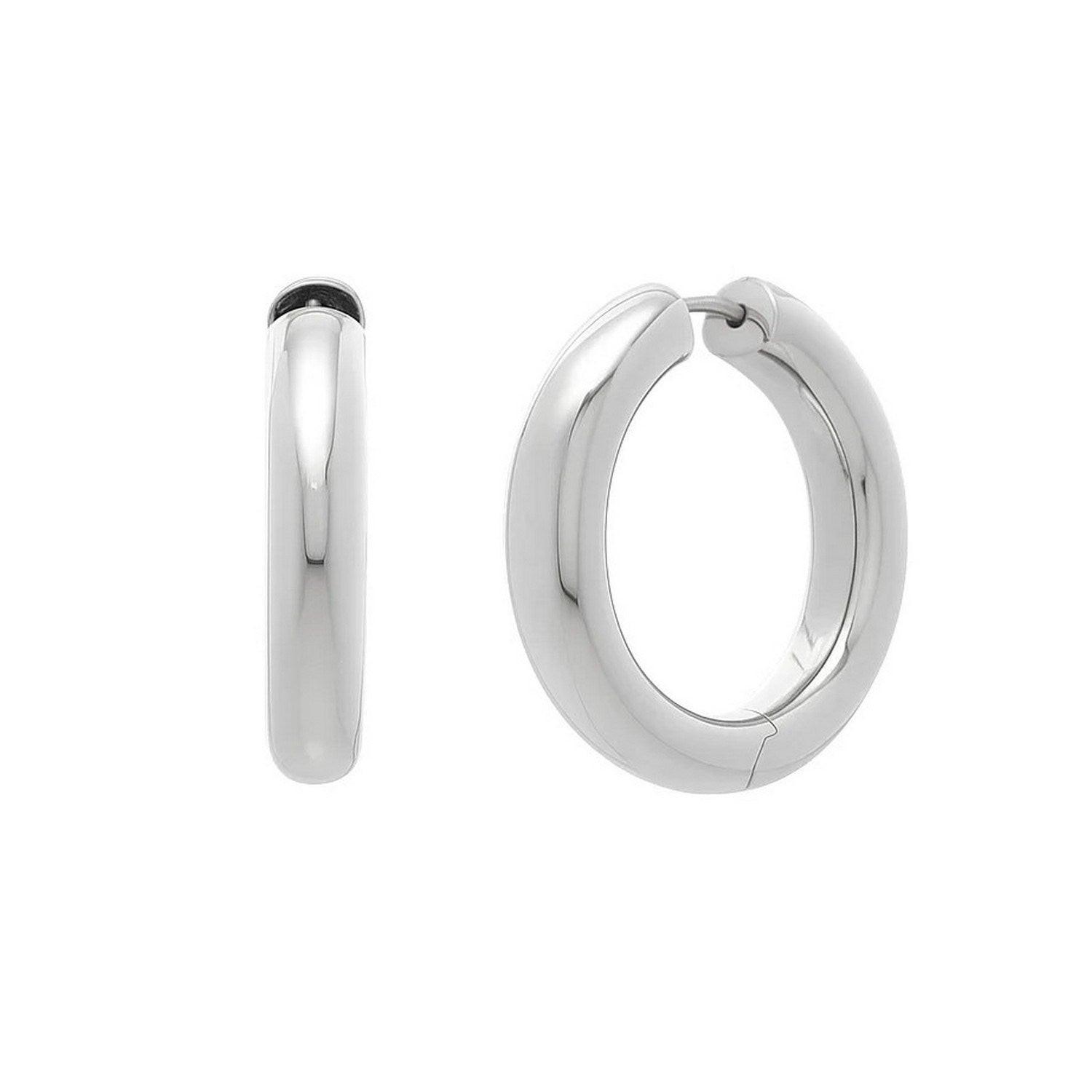Classic sterling silver round hoop earrings featuring a polished finish and secure snap clasp closure. The timeless circular design offers effortless elegance and comfortable wear, making these versatile hoops perfect for everyday style or special occasions.