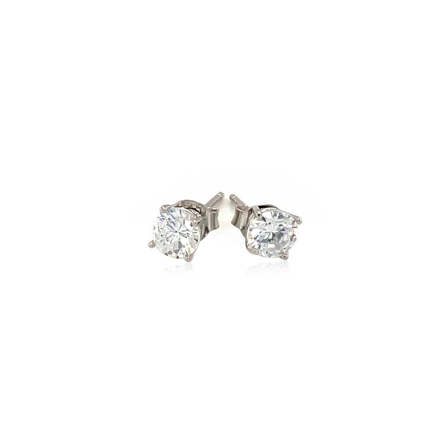 Sterling Silver Stud Earrings with White Hue Faceted Cubic Zirconia(5mm)