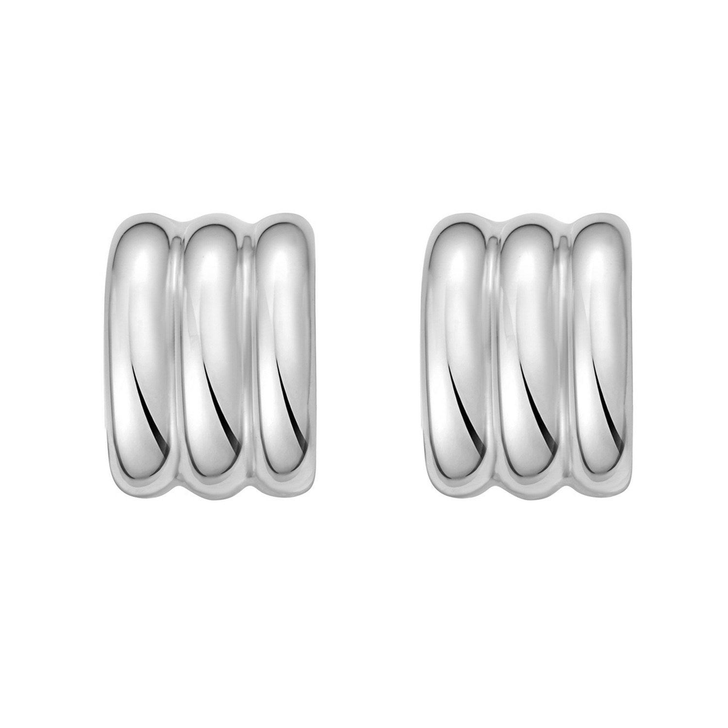 Sterling Silver Triple Row C Hoop Earrings