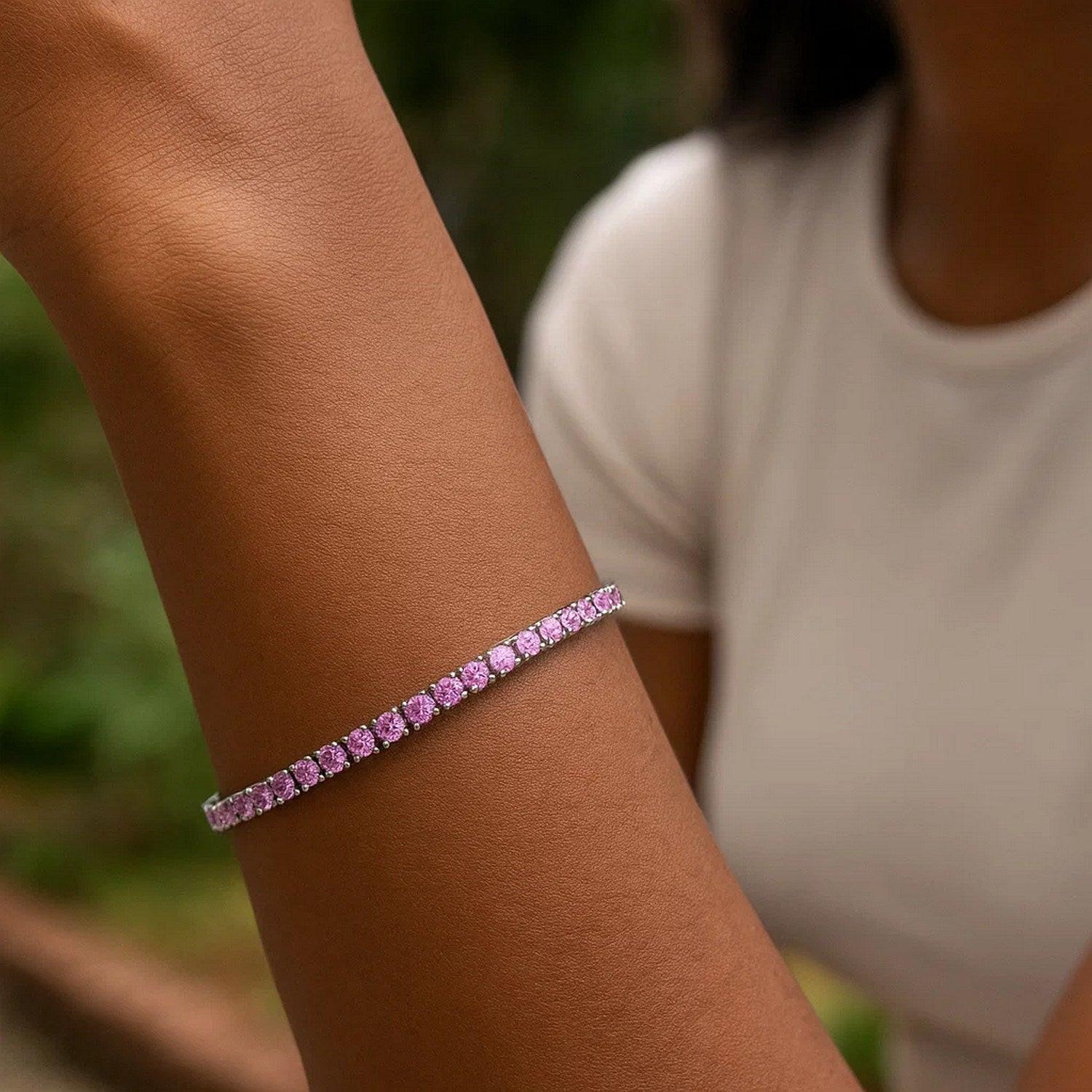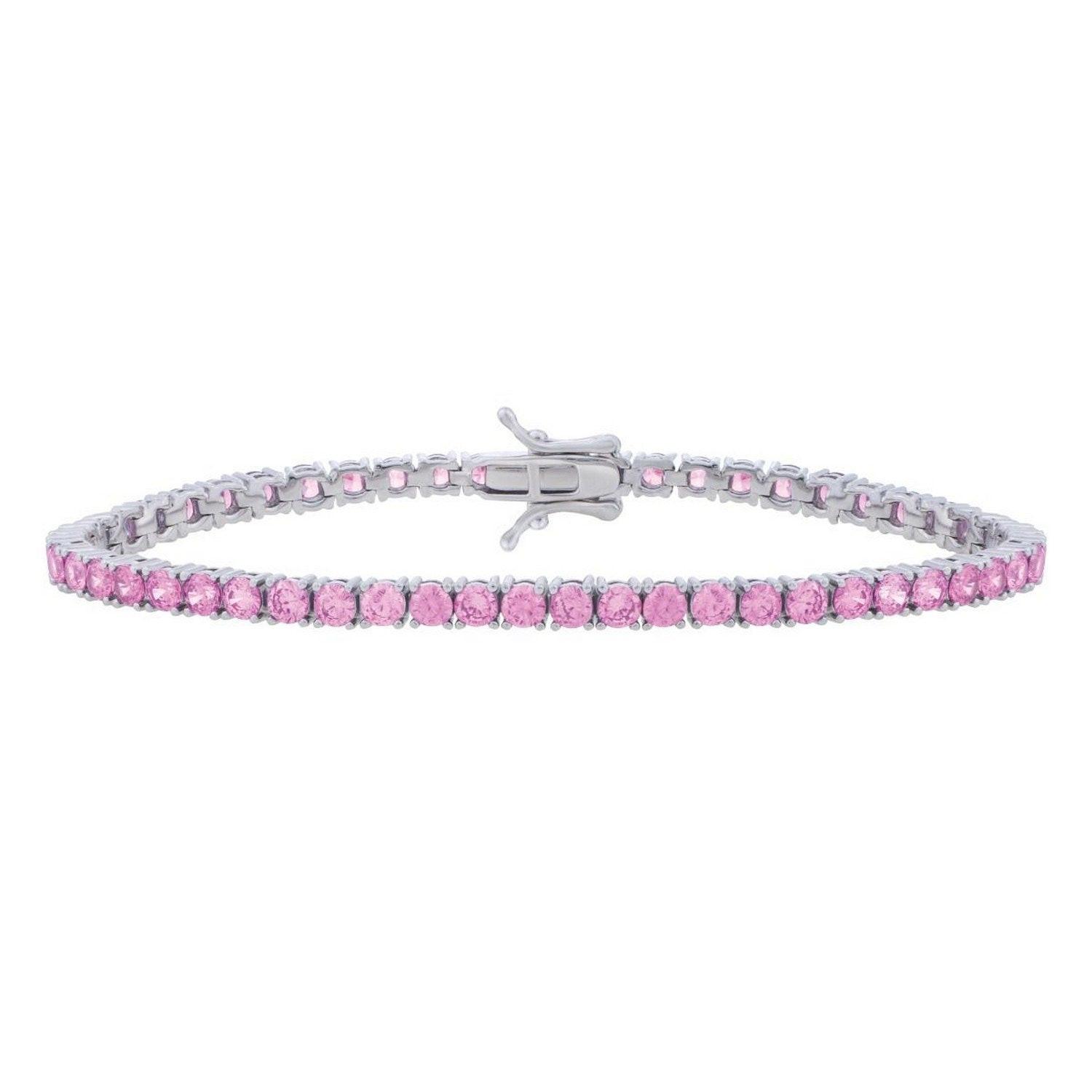 Radiant and feminine, this Sterling Silver Pink CZ Tennis Bracelet (3.30 mm) adds a soft pop of color with timeless sparkle. Each pink cubic zirconia stone is precisely set to create a continuous line of brilliance, while the sterling silver setting provides a bright, polished finish. Perfect for special occasions or adding everyday elegance, this bracelet delivers a fresh, modern twist on a classic tennis design.