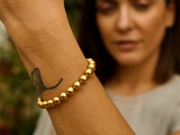 This sterling silver yellow gold plated bold bead bracelet features large polished beads that create a striking, radiant look. Its warm golden shine and modern, elevated style make it a standout piece perfect for everyday wear or layering.