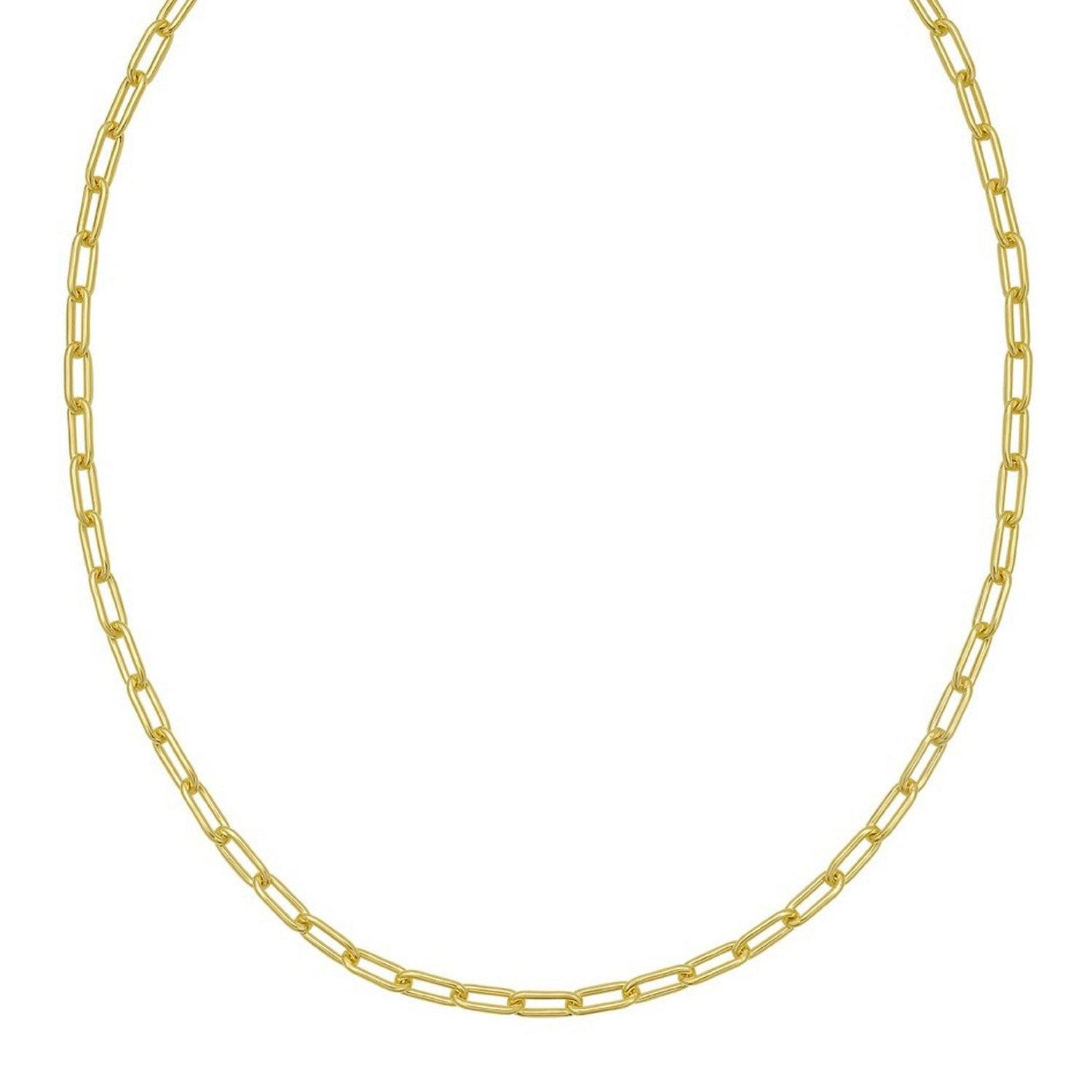 Crafted in sterling silver with a rich yellow gold plating, this 4.10 mm round link paperclip chain features bold, rounded elongated links that create a modern, open silhouette and radiant shine, making it a striking accessory perfect for wearing on its own or pairing with a standout pendant.