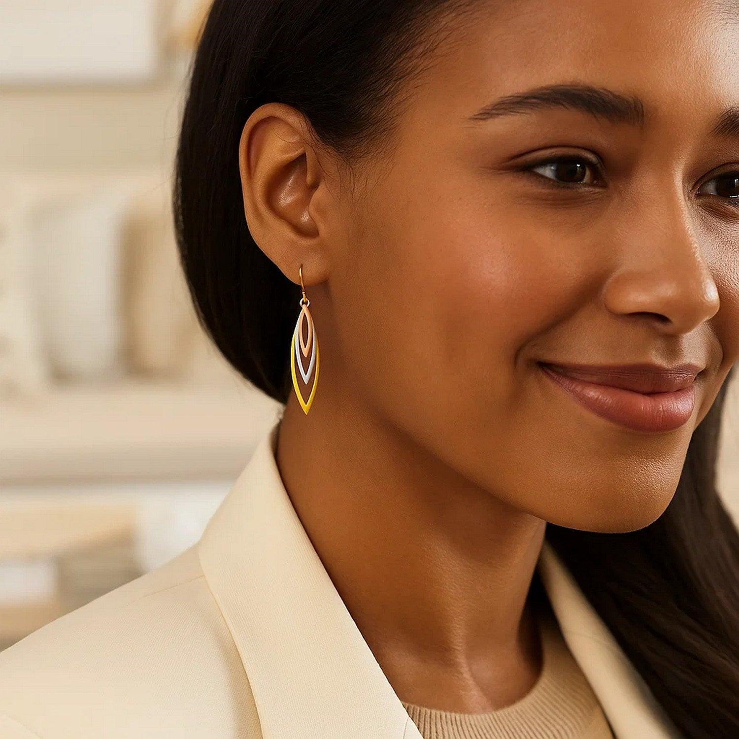 Tri-Tone Graduated Open Marquise Earrings in 10k Yellow, White, and Rose Gold
