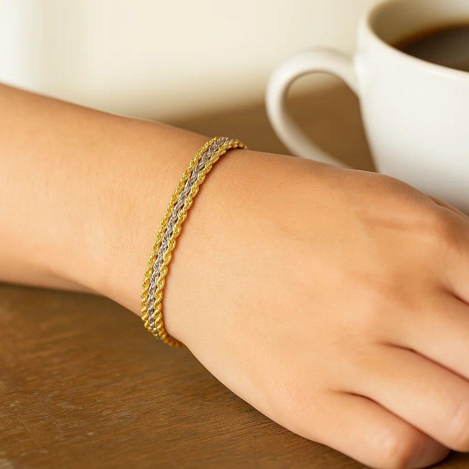 Triple Strand Rope Chain Bracelet in 10k Two Tone Gold (6.35 mm)