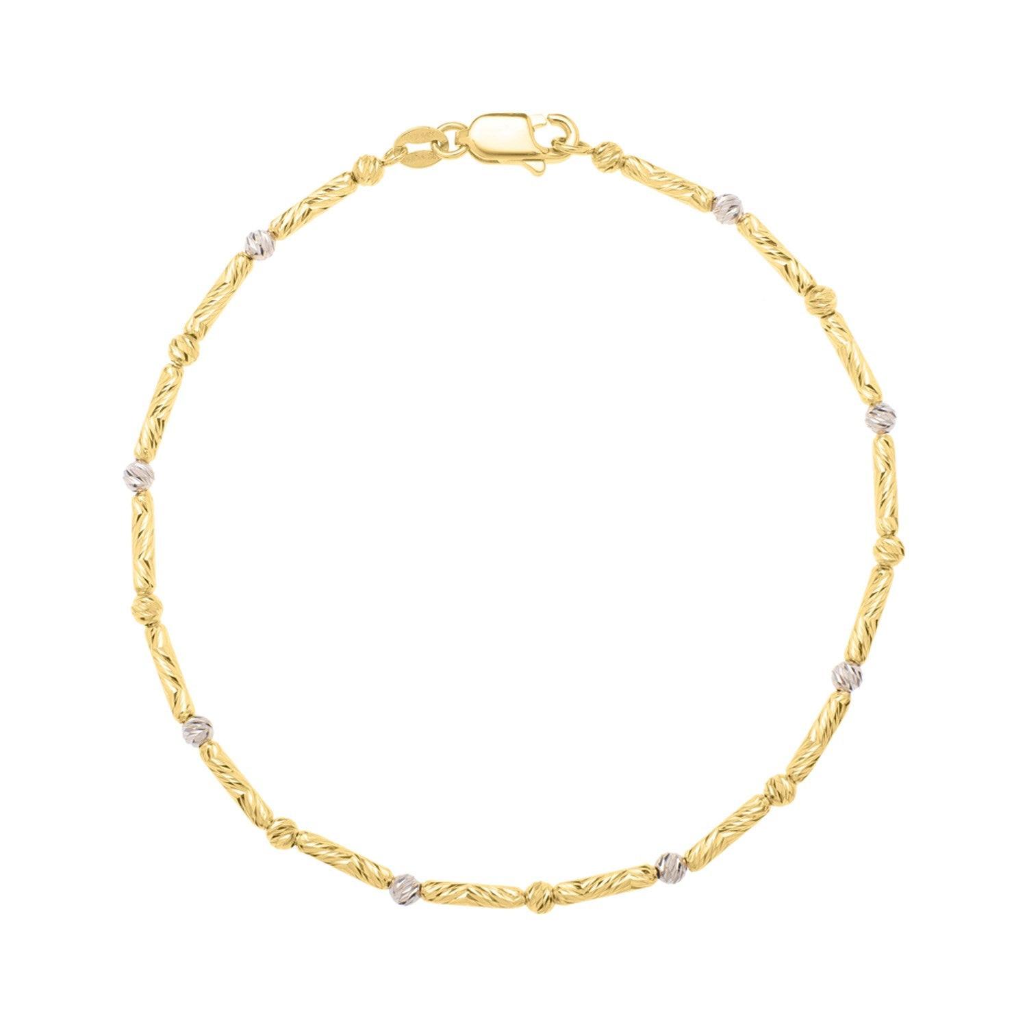 Two Tone Bar and Bead Bracelet in 14K Gold (1.70 mm)
