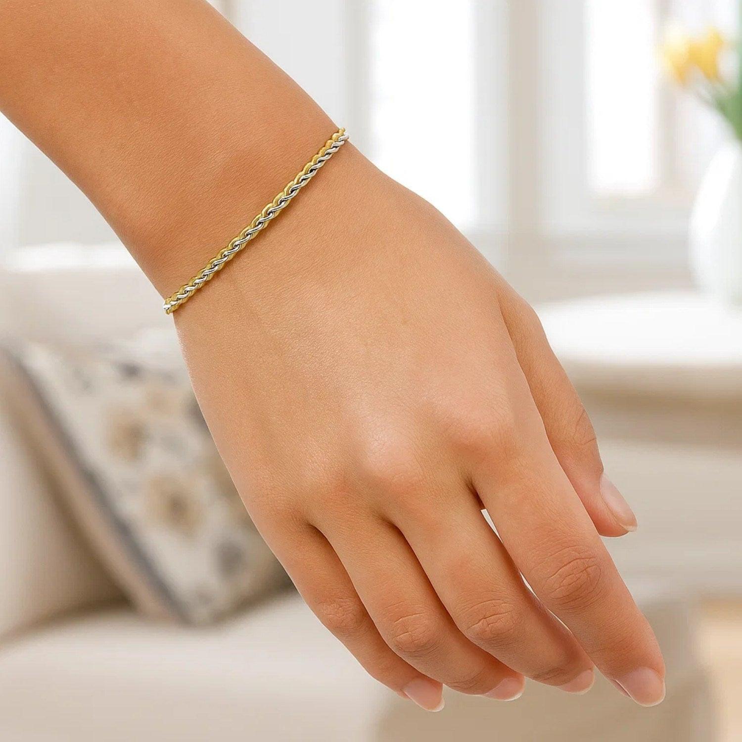 Two-Toned Fine Wheat Chain Bracelet in 10k Yellow and White Gold (3.00 mm)